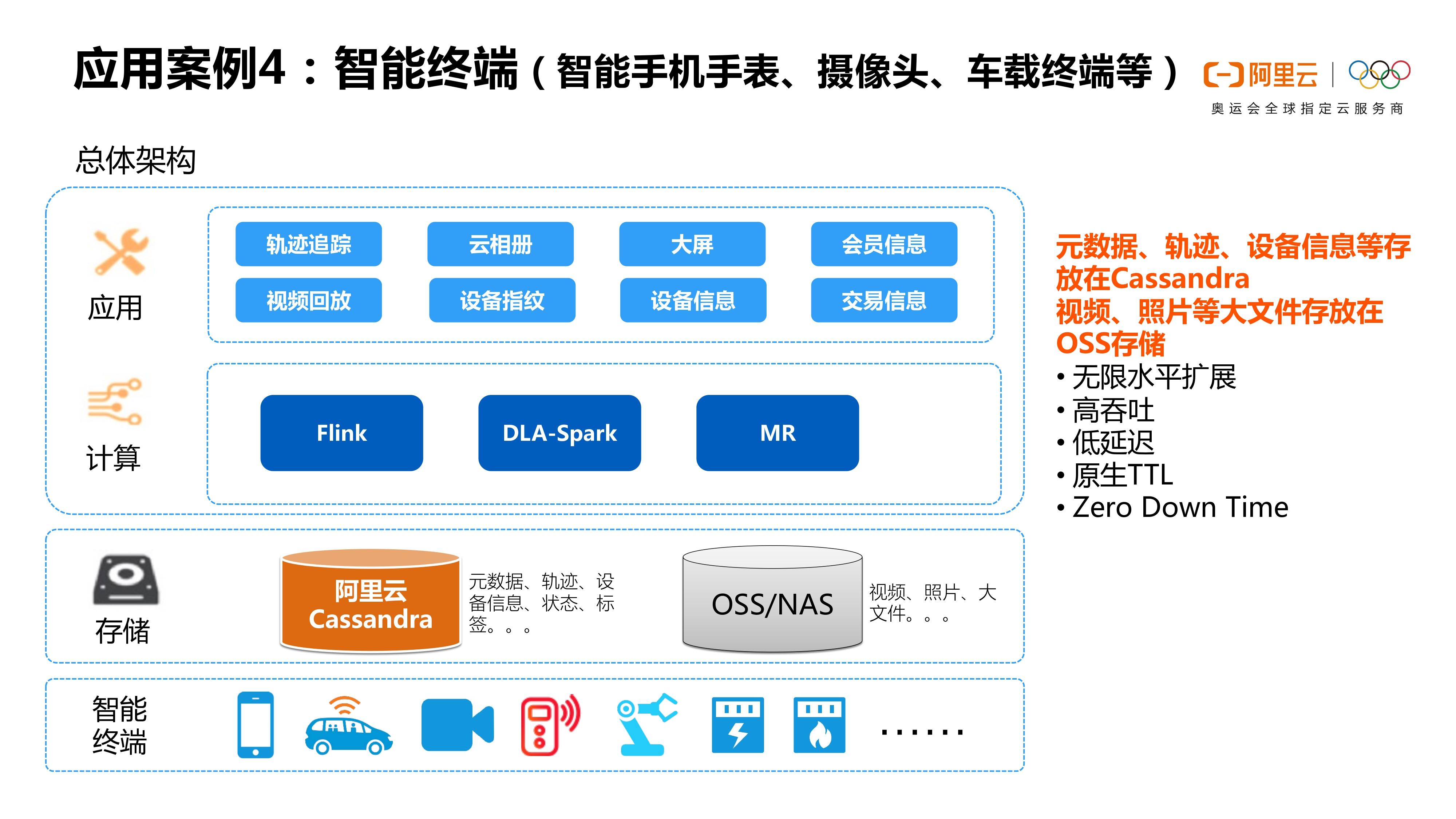 我们Cassandra一些用户主要是用Cassandra来储存元数据。比如说视频监控,其实大量的视频文件放在Cassandra是不合适的,你可以放到OSS或者NAS里面。但这个视频本身是有元数据的,比如说“这个视频是在什么时候录的?通过是哪个设备录制的?设备是属于哪个用户的?”类似于这种属性类的大量元数据是可以存到Cassandra中的,包括设备的用户信息。