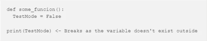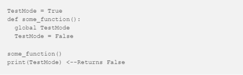 当移除“Global TestMode”只能在 some_function() 函数中将变量设置为 False。如果你想在多个模块间共享一个全局变量,那么你需要创建一个共享模块文件。如 configuration.py,并在文件中找到你所需的变量。最后导入共享模块。