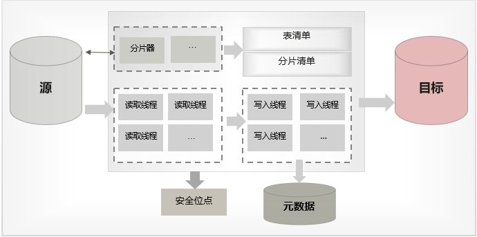 全量同步的整体逻辑比较简单,就是从源库把数据通过select的方式查询出来,然后再将这些数据写入到目标库,只是在具体的代码实现上会有一些关键技术点。