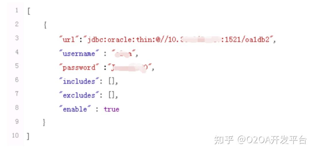 externalDataSources.json 配置文件内容为oracle相关数据库地址、端口、实例、用户名和口令配置