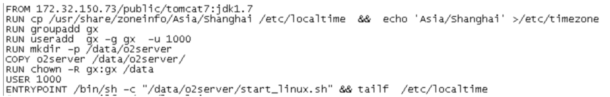 3.3、将解压后的o2server拷贝到容器中(使用COPY命令),一开始尝试直接将安装包unzip到容器里面,试验了几次都报错后才使用的copy方式。
