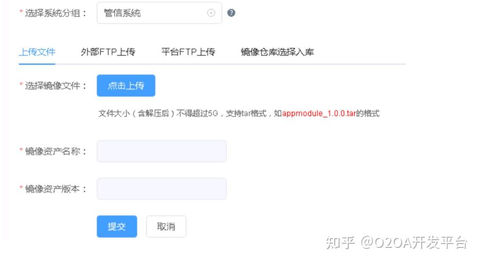 1、将镜像文件(o2oa_1.0.0.tar)上传至PAAS平台的镜像仓库。使用PAAS平台提供的镜像资产上载工具(如下图)