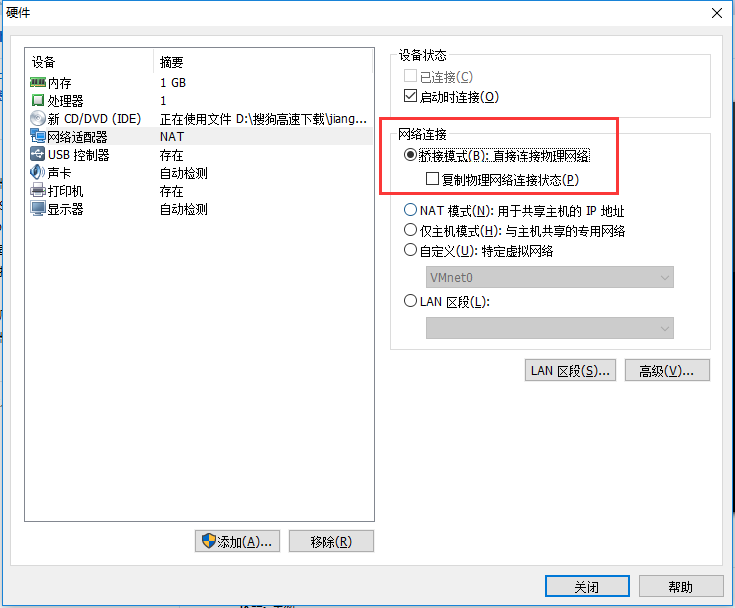 网络改成桥接,可以和物理机在相同网络,创建完成后开启虚拟机