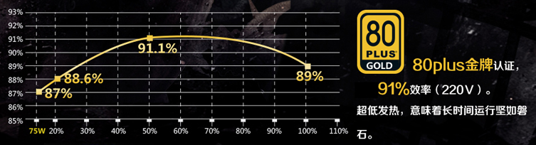 经过实际测试,上面这句话是错误的,由于功耗太低,所以效率体现不出来,只要买品牌电源就可以,太差的话风扇用久了可能噪声会变大。