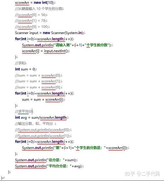 思路1:定义一个变量sum、avg,分别存储总分、平均分;定义10个变量score1、score2、score3.....score10,分别存储一个分数。