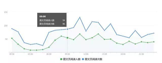 在公众号的数据分析中,单篇图文其实是价值不大的,所以我们主要是看全部图文的小时报。它统计文章一天内不同的时段被用户阅读的情况,能够比较好的体现用户的活跃时间段,这个数据值得好好统计,至少要按月分析。
