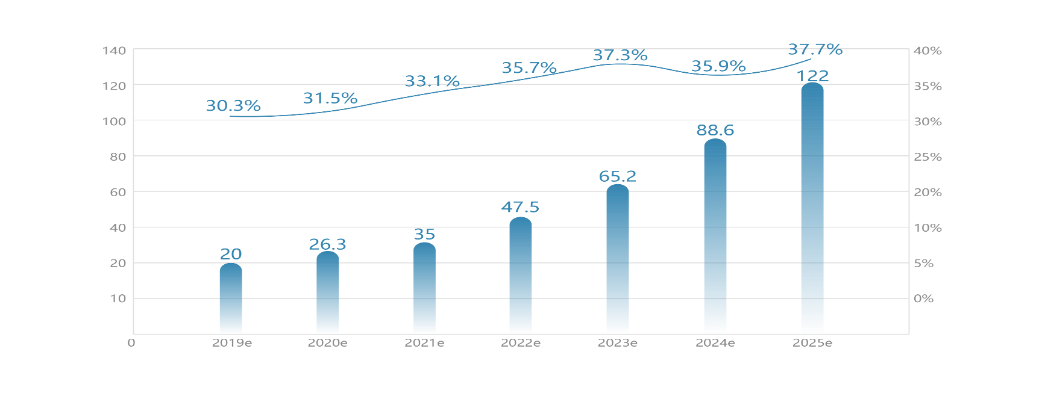 RTC 实时音视频会成为5G 时代基础设施的核心控制点,RTC 应用很广泛,它的市场年增长率超过30%,而且这项技术不仅能赋能直播、游戏等泛娱乐行业,更能在在线医疗、教育、金融等大视频行业渗透。