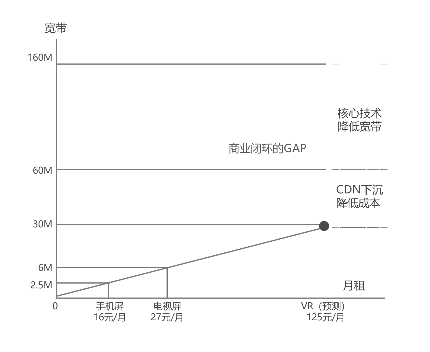 虽然困境在逐步改善,但VR 目前还面临着新的问题。互联网VR 业务很难形成商业闭环,主要原因在于VR 业务带来了收入增加,但与此同时带宽成本增加更多,VR 追求的高质量体验需要通过更高带宽来实现,高带宽势必会带来高成本,而高成本就会导致商业无法闭环。