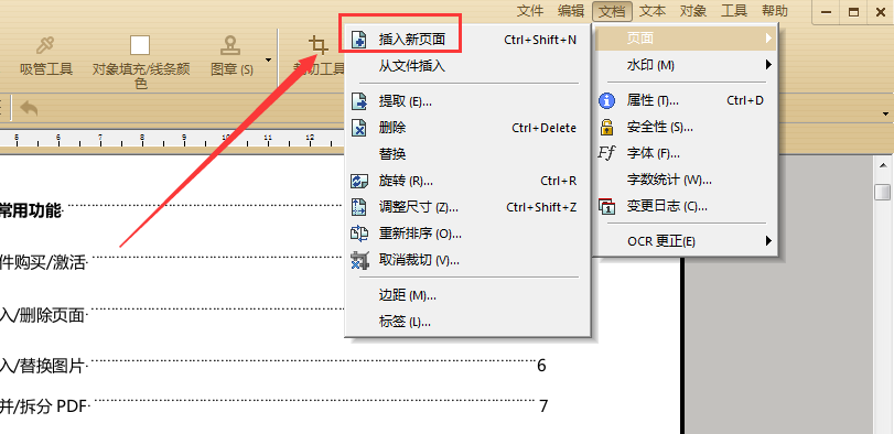 方法2:我们用来修改PDF的编辑器也有拆分功能。用极速PDF编辑器打开需要拆分的PDF文档后,点击软件右上角“文档”中的“页面”并选择提取页面工具。