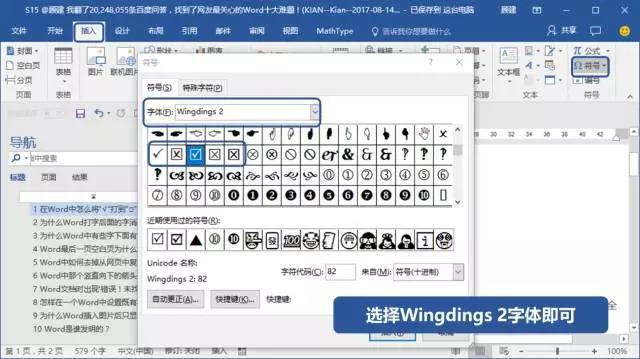 ❹ 插入一个带钩的选框符号