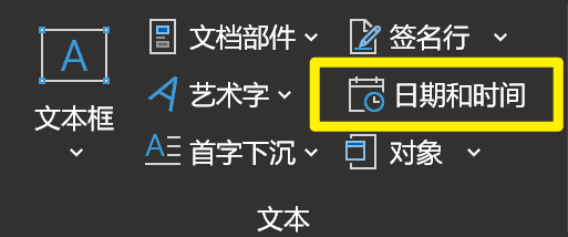 依次点击「插入」→ 「文本」→ 「日期和时间」