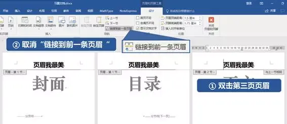 最后,总结下三步去除封面页页眉的方法: