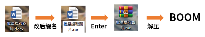 教你一招绝技:直接把Word文件的后缀格式改为[.rar],然后解压。