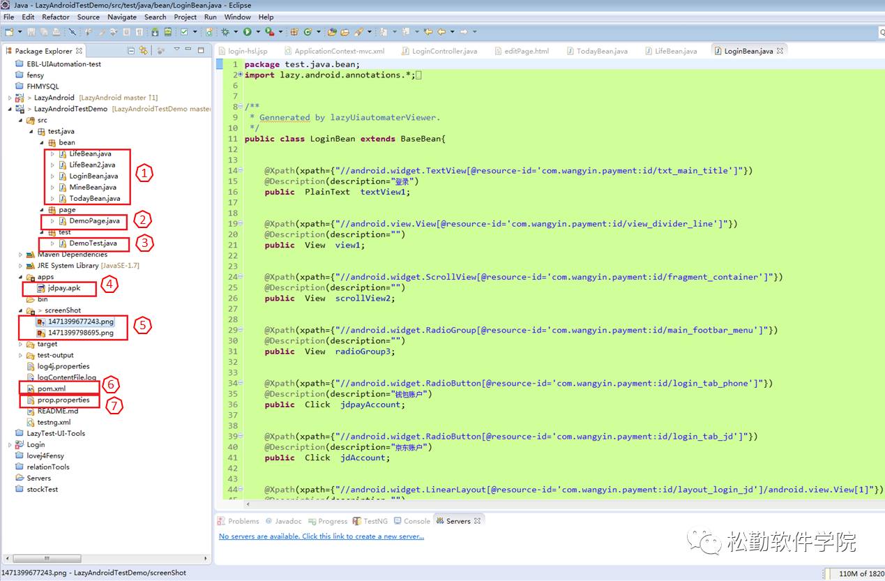 1是bean层,是lazy-uiautomaterviewer自动生成的java代码,是基于目标控件xpath自动定义的变量。