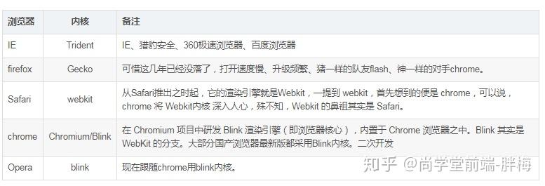 - 浏览器的内核是指支持浏览器运行的最核心的程序,分为两个部分的,一是渲染引擎,另一个是JS引擎。渲染引擎在不同的浏览器中也不是都相同的。