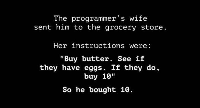 老婆给当程序员的老公打电话:“下班顺路买一斤包子带回来,如果看到卖西瓜的,就买一个。”