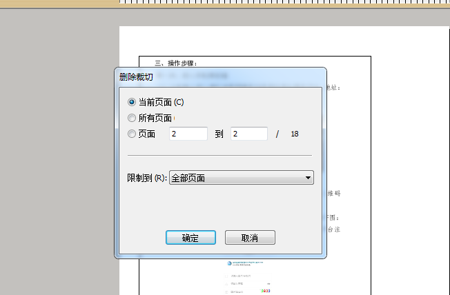 在弹出的窗口设置该裁切操作所要应用的页面范围(如果每页内容区域一致可直接勾选所有页面更方便,但如有差别请谨慎使用,可单页多次操作更准确)