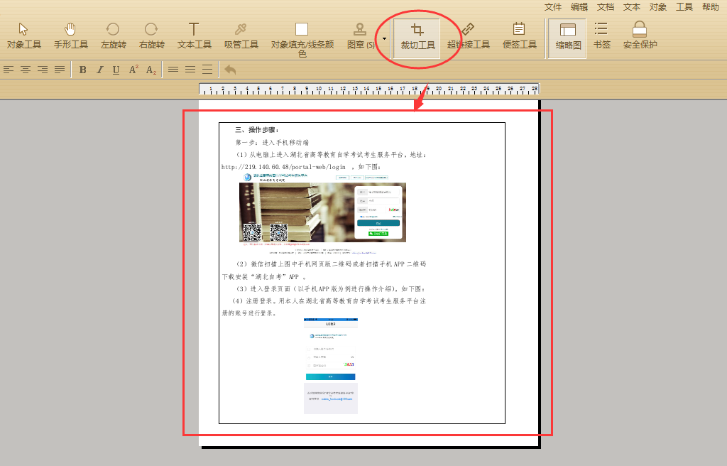 接着选择裁切工具并在当前页面框选出仅仅需要的部分的区域后,双击鼠标左键确认。