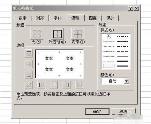3.在新建excel中,用鼠标选中需要的表格行数列数,然后点右键,“设置单元格格式”——“边框”,在“预置”中根据需要选择“外边框”、“内部”边框。
