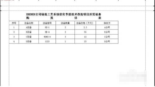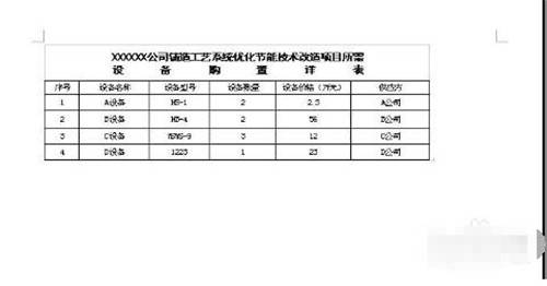 8.如果需要将此表插入到word文档以便其他使用,也很简单。先将刚做好的Excel表格保存为一个文件名《设备表》到桌面上。将此页的页面设置成横 向,否则表格会显示不全的。在Word文档中需要插入的地方,点击一下鼠标,然后选择上面“插入”---“对象”——“由文件创建”,然后找到刚刚保存的 《设备表》,插入,确定,然后就插入到Word中了。效果图如下: