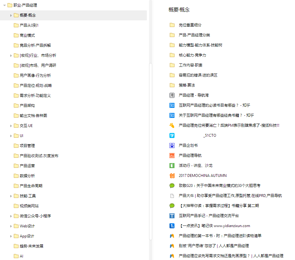其次是分类,下图是我的书签目录,持续完善中。