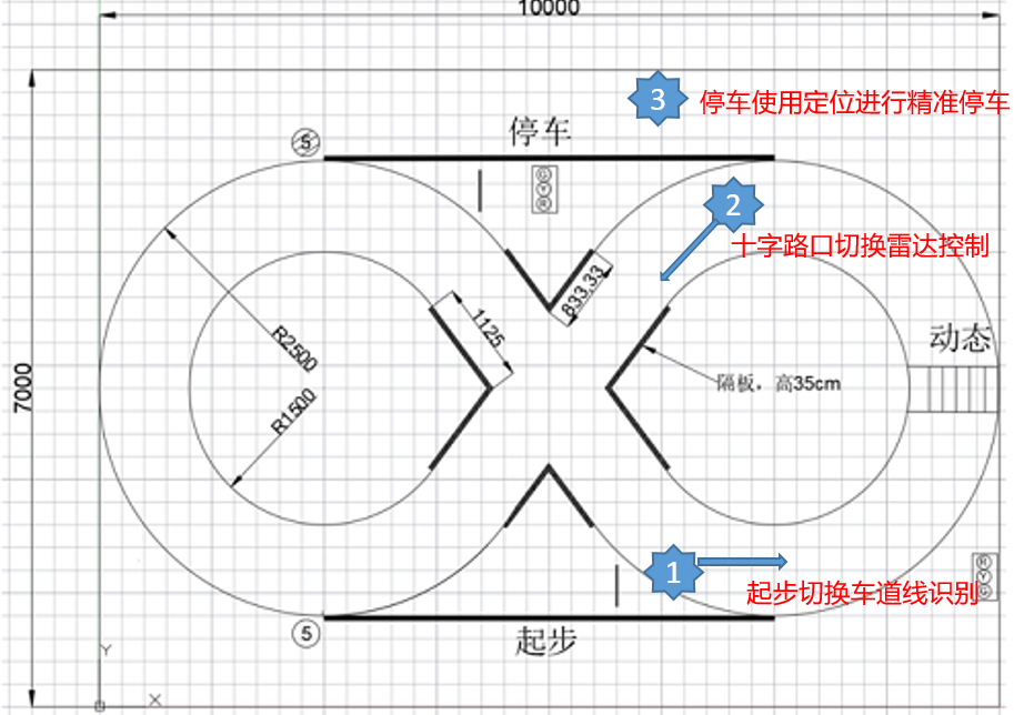 在小车行驶过程中,将ROS节点的各个信息,做多模态融合,实现无人车不同状态下切换,如图5‑6所示,无人车完成起步、斑马线停车避障、挡板区循迹、限速/解限速、精准停车等任务。