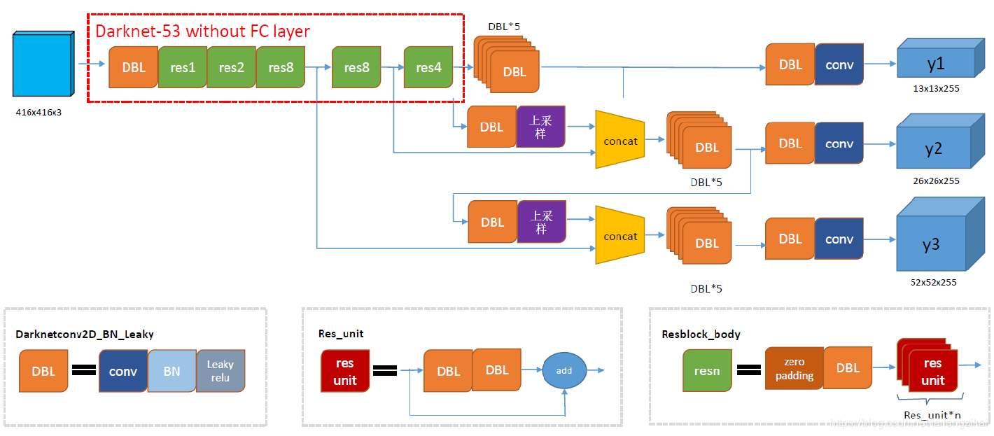 图3‑6 YOLOv3_Darknet53网络结构图(摘自网络)