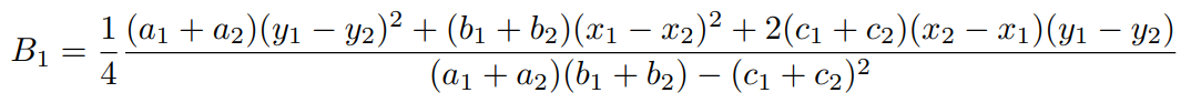 假设预测 GBB 为 p= (x1,y1,a1,b1,c1 ),真实 GBB 为 p=(x2,y2,a2,b2,c2 ),则其损失函数如下所示:
