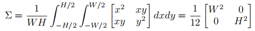 对于 HBB ,其二元区域 Ω 为以 (x0, y0) 为中心,高为 H,宽为 W 的矩形区域 , 因此 μ 为 (x0, y0) , 它的协方差矩阵 Σ 可通过如下公式进行计算