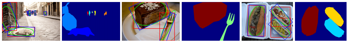 GBB与目标的语义分割mask形状更加接近,更加贴合非矩形目标,在非矩形目标检测效果优于HBB和OBB。