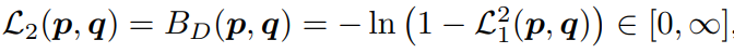 由于 Bhattacharyya Distance 不满足三角不等式,所以它并不是真实的距离,因此,为表示真实距离,采用 Hellinger Distance (HD) ,其公式如下: