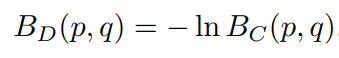 其中 BC (p,q ) ∈ [0,1], 当且仅当两个分布相同时,BC (p,q)=1 。