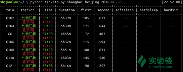1. Python3 实现火车票查询工具本课程使用 Python3 抓取 12306 网站信息提供一个命令行的火车票查询工具。通过该项目的实现,可以熟悉 Python3 基础及网络编程,以及 docopt,requests,prettytable 等库的使用。