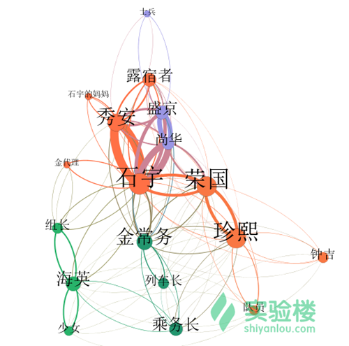针对《釜山行》剧本的文本,使用python编写代码分析文本中人物的共现关系,完成对《釜山行》文本的人物关系提取,并利用Gephi软件对提取的人物关系绘制人物关系图。