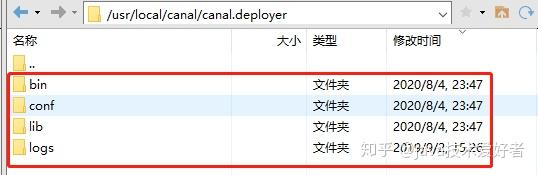 解压canal.deployer-1.1.4.tar.gz,我们可以看到里面有四个文件夹: