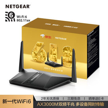 美国网件(NETGEAR) RAX40 AX3000M 全千兆MU-MIMO/低辐射/游戏加速/电竞高速路由器 【WIFI6|双频2天线】