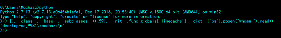 下面思路就是用python语句进行命令执行,当然后台过滤了一些关键词