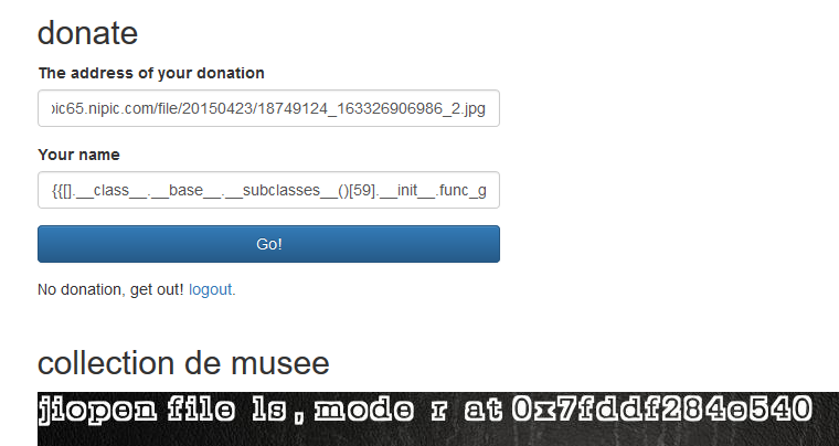 注册完后,在donate.php处可以填写图片url,以及用户名。随便填报错,发现使用后台了jinja2模板。