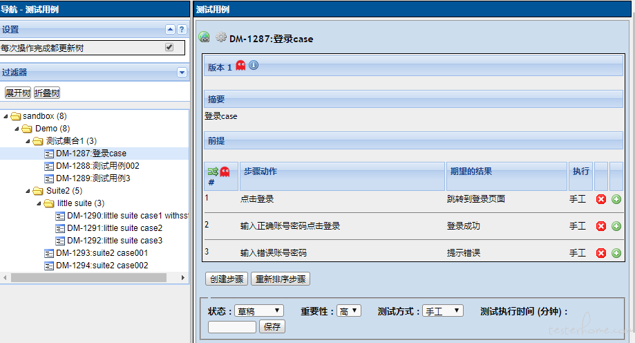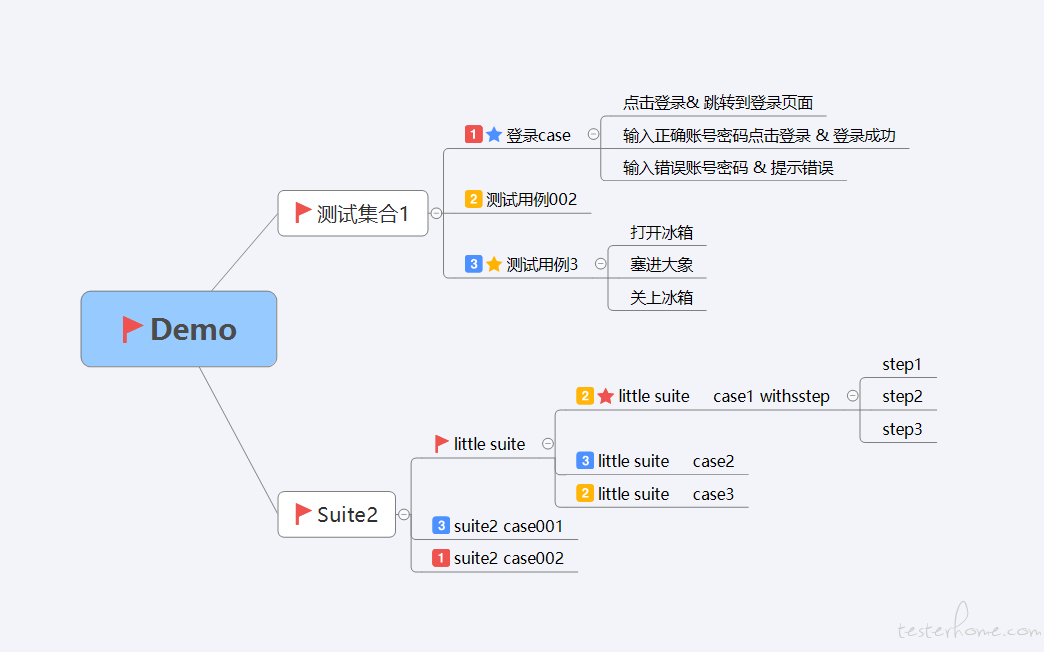- 用例优先级需要加上相关的图标:1 2 3 --->高 中 低 (标注其他数字图标的 默认是中优先级)