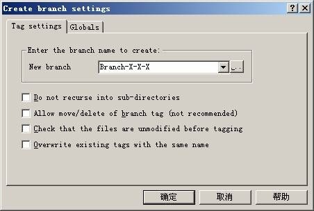 点击后在弹出的窗体里输出要建立的分支名称,注意分支名称的头一个字符必须为字母。如下图: