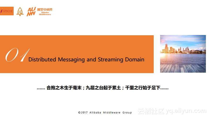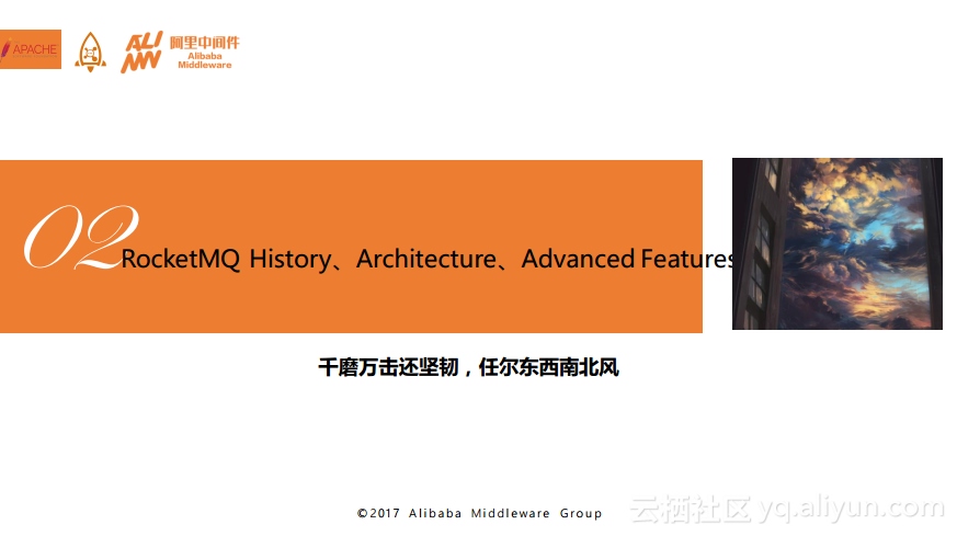 在简单地为大家分享了分布式系统以及分布式消息系统所使用到的一些技术之后,接着为大家分享一下RocketMQ的发展历史、架构设计以及Aliware MQ能够提供的高级特性。