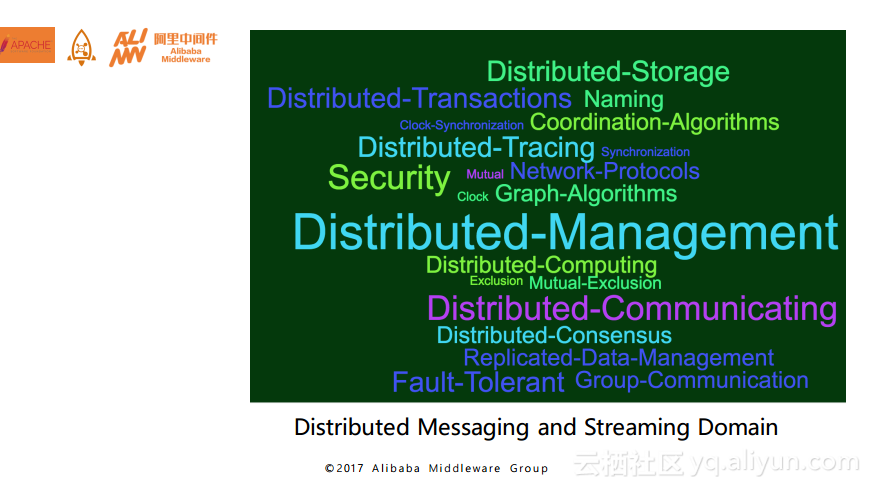 大家对比前后两幅图就会发现,在消息领域需要解决的技术栈中的很多问题与分布式系统中的问题是存在交集的,所以可以说分布式消息领域融合了很多现代分布式系统技术中极具挑战性的研究领域。