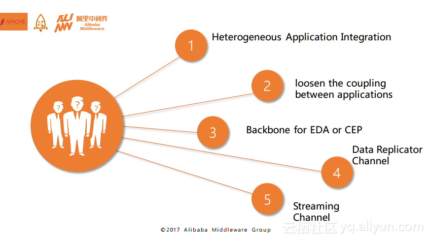- 应用和应用之间的松耦合,这个在阿里巴巴内部很多的同步链路到异步链路里面,使用的非常多。