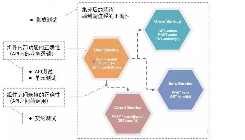 - 契约测试,更强调是组件之间连接的正确性,除了保证组件内部,还要保证组件间的调用是正确的,也就是服务API之间的调用。