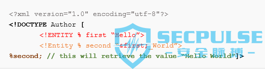 该类型的实体用“%”字符(或十六进制编码的%)声明,并且仅在经过解析和验证后才用于替换DTD中的文本或其他内容: