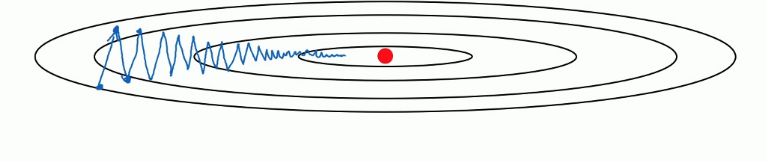 梯度下降算法就像是上面这个图一样,像一个碗一样。这是我们优化成本函数J的方式,不停的更新w和b的值。让函数移动到最下面的那个红色的点,也就是全局最优解。在这个过程中在纵轴上我们是上下波动的,横轴上我们不停的像最优解移动。 在这中间我们发现纵轴上下波动的太大导致我们在横轴上的移动速度不是很快。 这就需要我们增加迭代次数或者调大学习率来达到最后到达最优解的目的。 但是调大学习率会导致每一次迭代的步长过大,也就是摆动过大,误差较大。 而增加迭代次数则明显的增加了训练时间。 这时候指数加权就出现了。