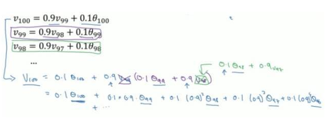 通过上面表达式,我们可以看到,V100等于每一个时刻天数的温度值再乘以一个权值。
