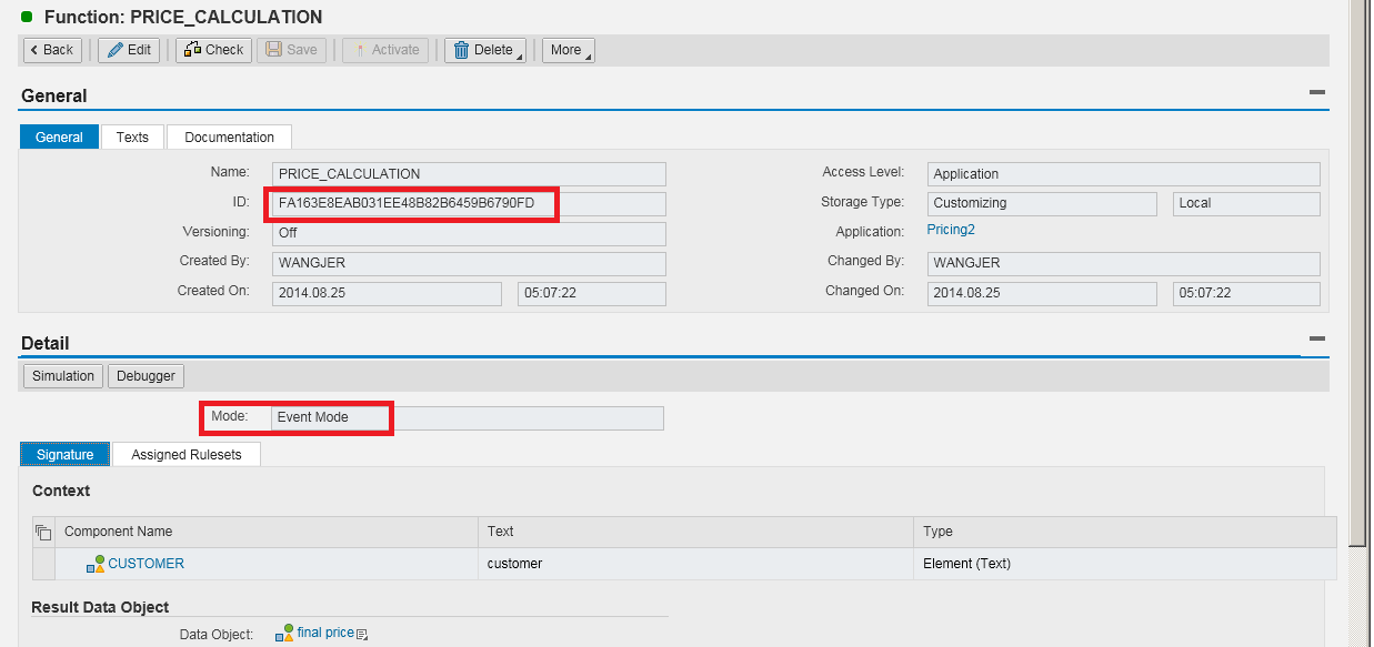 点击PRICE_CALCULATION的超链接进入function的detail page: