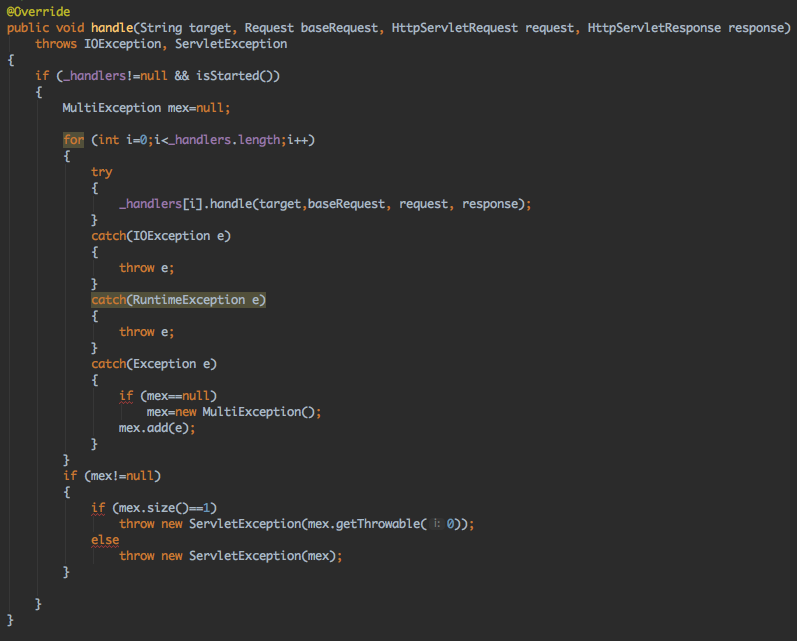 Handler组件是Jetty实际处理Http请求业务逻辑的执行器,一个实际的Jetty服务应该最少存在一个Handler。Handler有很多种形态,例如单纯处理Servlet请求的或者是一个包含多个Handler的容器