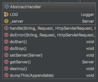 正如之前文章所说,Jetty几乎对每个组件都实现一套骨架,Handler组件也不例外,AbstractHandler即为Handler的骨架,AbstractHandler继承ContainerLifeCycle并实现Handler接口